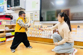 一人一支笔,口号结束后,交换去握住对方的笔,到底能不能稳稳的握住呢?让我们来看看吧!