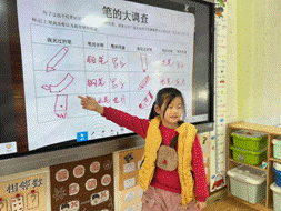 孩子们通过大调查,也发现了不同的笔,有着不同的特征,比如:铅笔、粉笔、油画棒都是越用越短的笔;签字笔、圆珠笔是可以更换笔芯的笔;钢笔是需要吸墨水的笔......