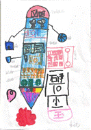 我设计的是“元宝笔”,在笔杆上有电视、烤箱、空调、钟表,饮水机,这些智能家电都是来帮助我平时生活的,而且我还在笔的笔尖处藏了一支迷你小笔,这样来以备不时之需。