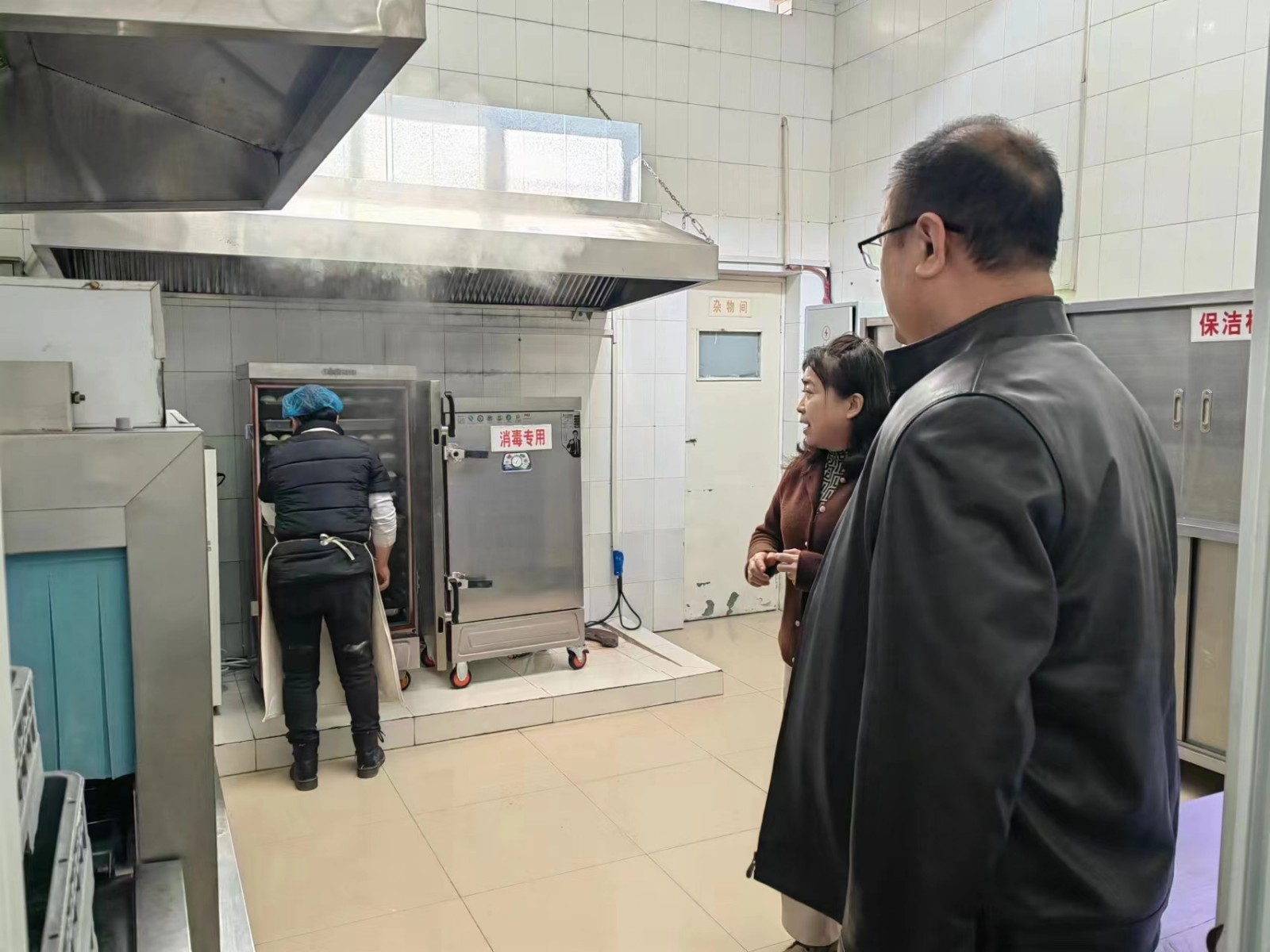 他们检查了幼儿园食堂操作间和设备加工环境,对于幼儿活动场所提出了指导性意见。