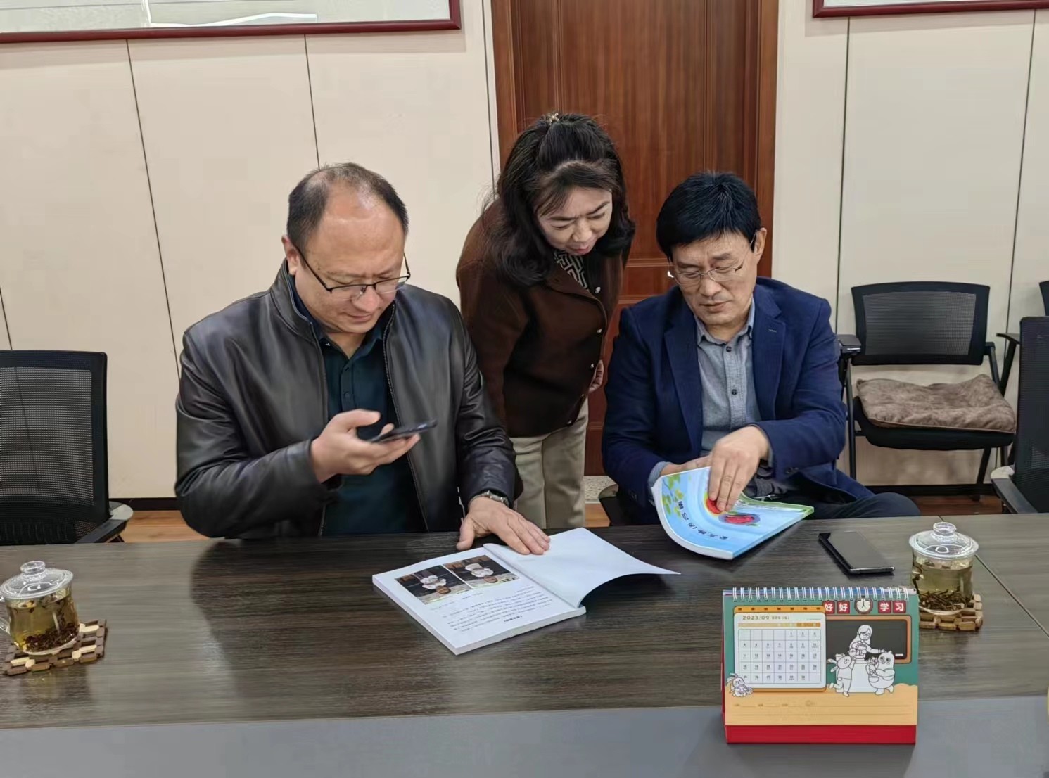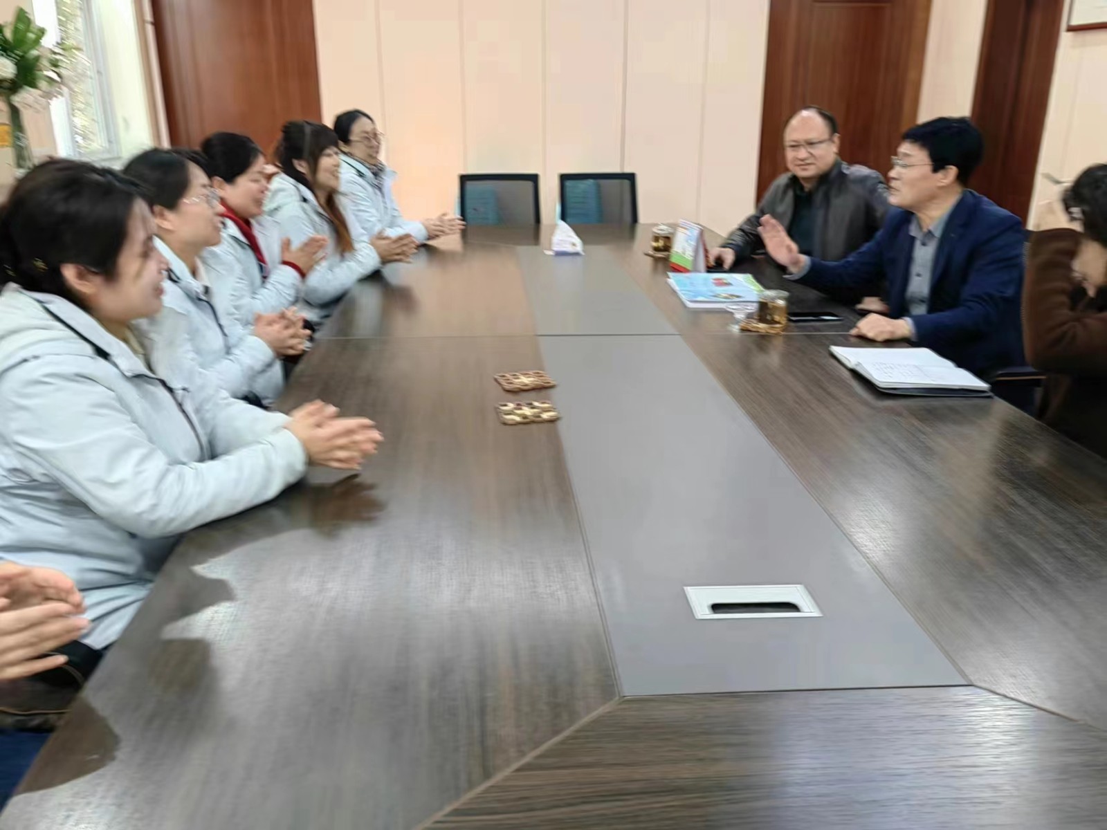 随后来到会议室,鲁处长、赵处长与部分骨干教师畅谈,倾听老师们的心声,了解她们的困难。