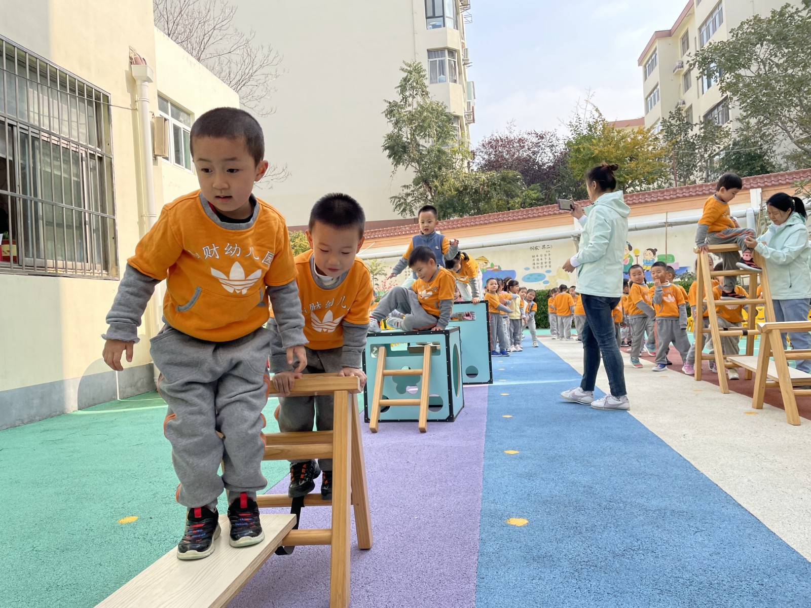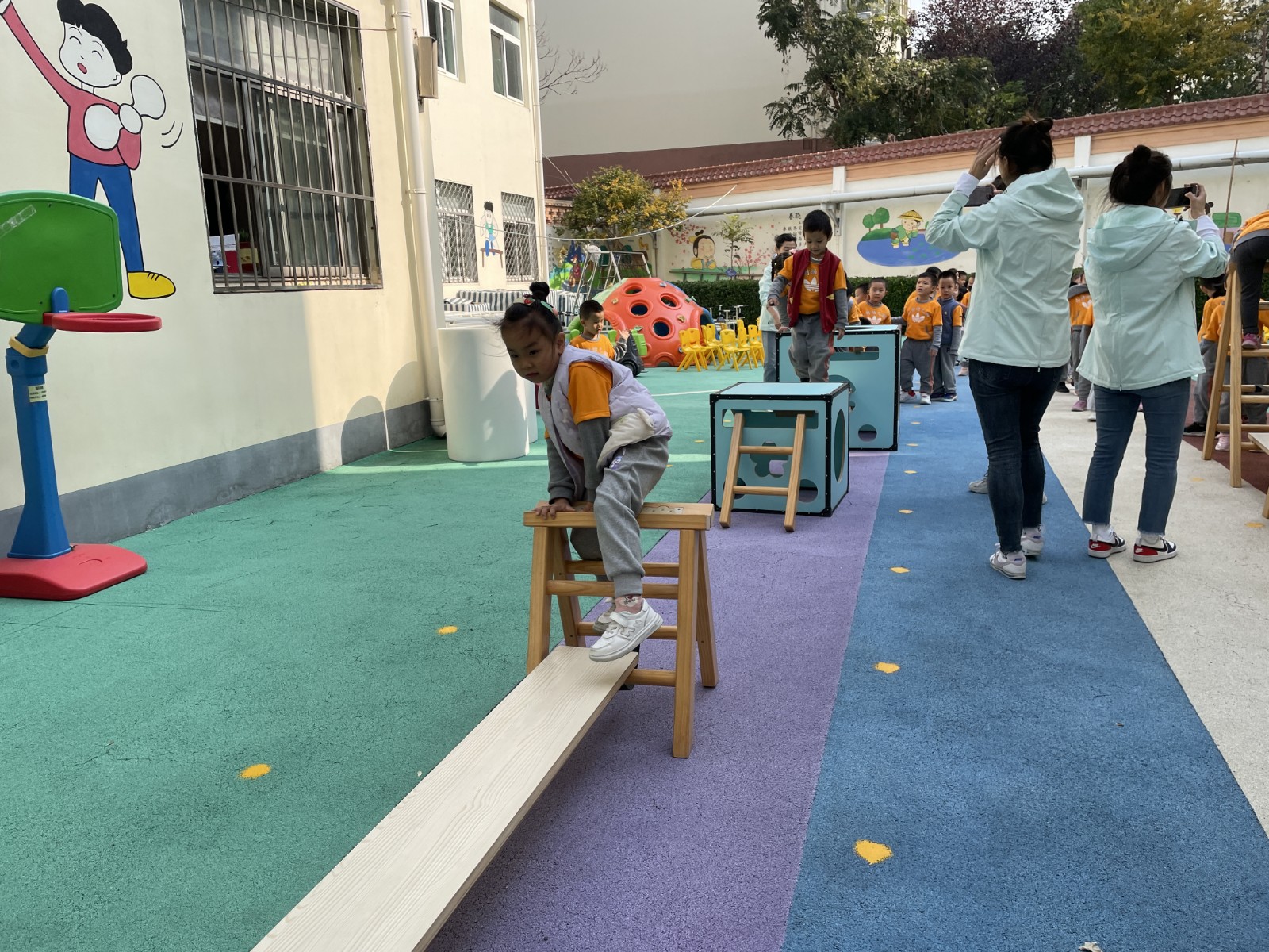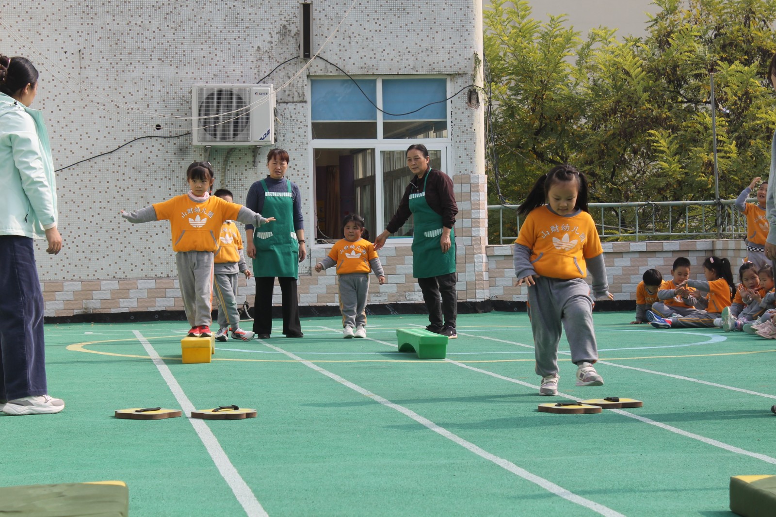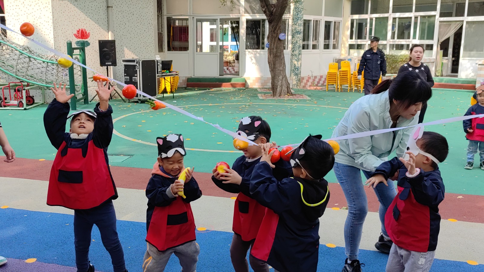 我们老师们精心设计了“小动物摘果果”、“闯关我最棒”、“炸碉堡”、“火车跑得快”、“极速前进”、“花样篮球”、“运西瓜”、“翻山越岭”、“踩石过河”、“旋风跑”、“全能小将”等适合各个年龄阶段孩子们的运动游戏,三个分会场的活动把运动会推向了最精彩的部分,孩子们充分发挥着自己学到的本领,将走、跑、跳、钻、爬、平衡等动作技能方面完美的结合起来,进行了多样化的锻炼并逐步做到了快速、准确、有力、灵活、协调,各种基本运动技能得到了充分的展现和发挥,通过和小伙伴们的合作赢得优秀的成绩,每个参与游戏活动的小朋友都是小脸红红的、汗津津的、情绪高涨大声地和身边的同伴们分享着她的收获和快乐,充分体验到集体合作的温暖和幸福,培养了孩子们团结合作意识和集体荣誉感、自豪感。