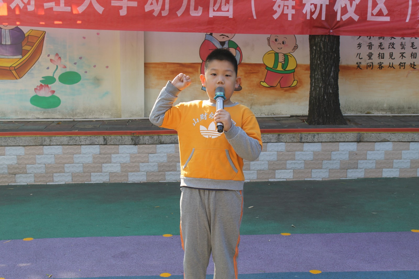 首先,由小小运动员代表——来自大二班的张洪硕小朋友进行宣誓