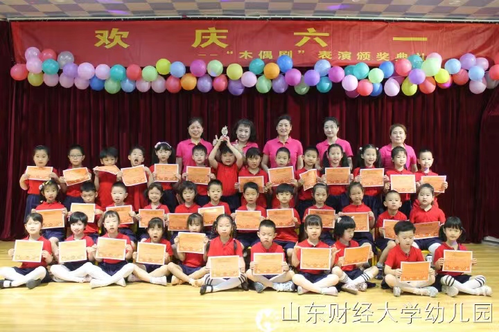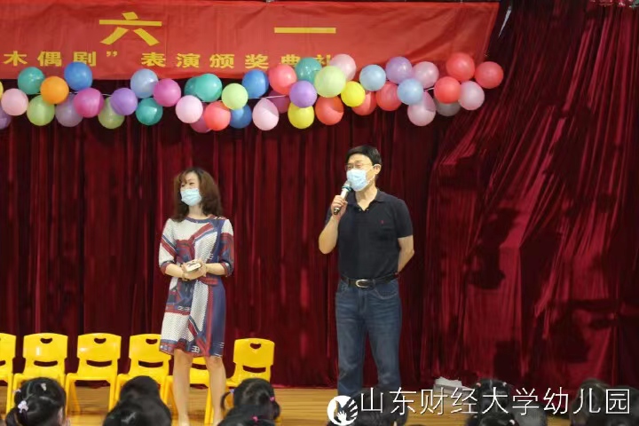 2022年6月1日上午9:30,山东财经大学校工会妇委会邱博主席、总务处鲁天鑫处长、赵亮副处长等领导一行带着山东财经大学校领导班子成员的关心和慰问来到舜耕园,看望全体师生、致以节日的祝福、和孩子们一起参加园里的非物质文化遗产“木偶剧展播颁奖仪式”活动并合影留念,亲切的笑容、温暖的话语,殷切的希望,无不传达着领导们对幼儿园发展的关心和支持,浸润着老师们和孩子们的心田;同时,鲁天鑫处长对幼儿园的工作给予积极肯定并对未来发展提出殷切希望。相信在各级领导的关怀下,我园全体教职工将不忘初心、牢记使命,将我们的幼儿园越办越好!