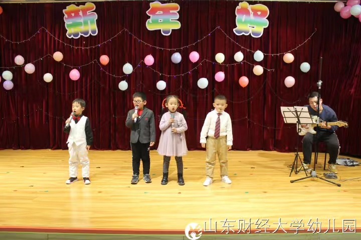 欢乐的时光总是短暂的,联欢会在全场齐唱《新年好》的歌声中进入尾声,大家互相拥抱、互相祝福,祝福我们的祖国繁荣昌盛,祝福我们的孩子们在新的一年里幸福安康、快乐成长!祝福我们的幼儿园在新的一年里更加美好!