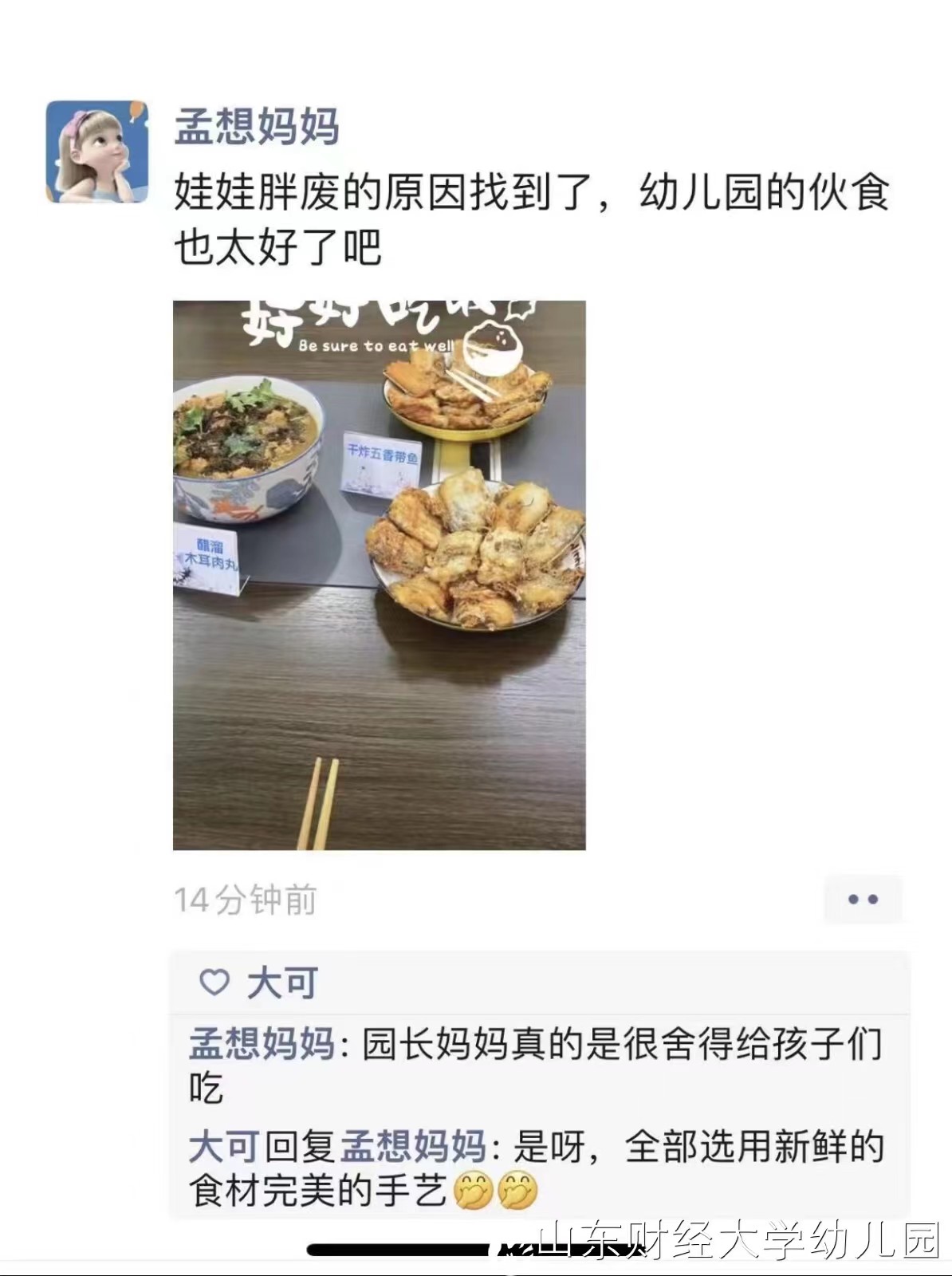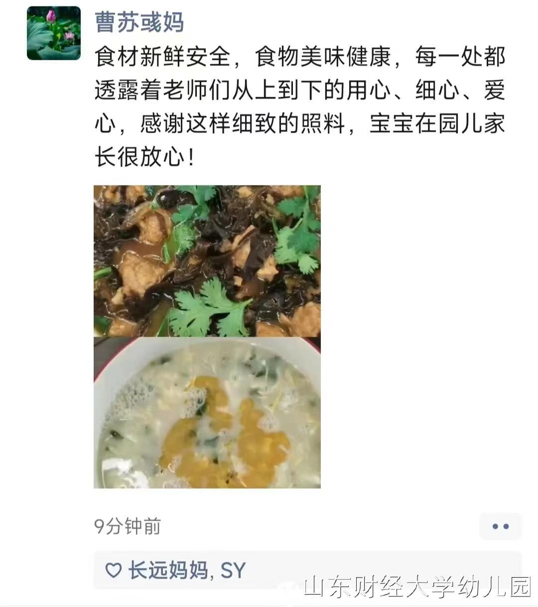 “美食品鉴会”圆满成功!通过本次现场展示品尝活动,让家长朋友们从食物的种类、口味和营养搭配方面更详细、更全面地了解到孩子们在园的膳食情况,大家都纷纷表示放心在园里的饮食并且非常感谢厨师妈妈们的爱心奉献和辛苦付出、感谢幼儿园对厨房工作的细致管理和严格把关。“一切为了孩子,为了孩子的一切”,有了家长朋友们的大力支持和监督,相信在今后的膳食营养搭配工作中,我们幼儿园将会做的更好,持续有效、优质开展。