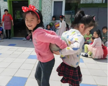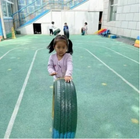 玩滚轮胎游戏的时候,我比其他小朋友快好多好多呢!