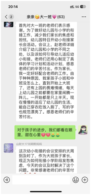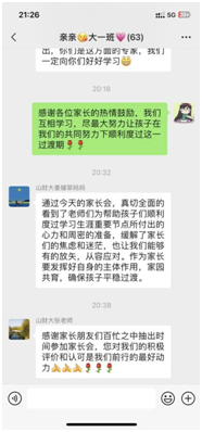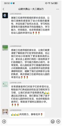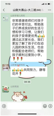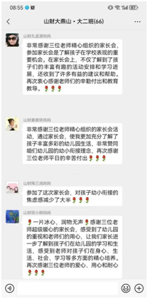 整个过程家长们认真聆听用心感受。会后,大家或是欣喜地描述着孩子身上的成长变化,或是真诚地表达对幼儿园和老师的感激之情,亦或是认真诉说这场家长会对自己的教育理念带来的改观····