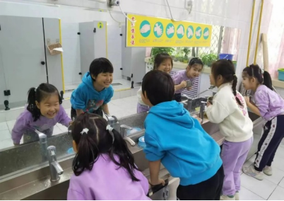 孩子们认真地刷牙、漱口