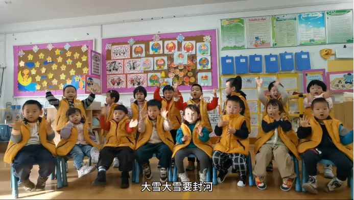 手指谣,更有利于小朋友记忆大雪节气的特点。“小雪封地,大雪封河”小朋友用儿歌的方式,记住了大雪节气北风呼呼的吹,乌云也遮住了太阳。