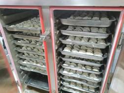搅拌调馅、擀面皮儿、搓条分块,大小均匀、小巧玲珑、用料十足、个大肚圆