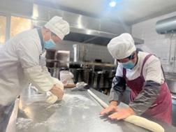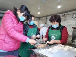 张园长带领老师齐聚厨房,大显身手。饺子皮在老师们的手中飞转,放馅、捏口、一系列动作一气呵成。饺子馅和饺子皮,在巧手加工下,俨然成了整齐的“饺子方阵”。