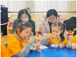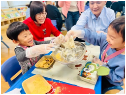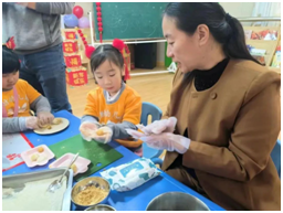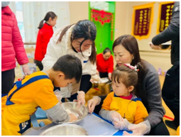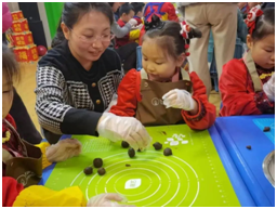 瞧,大班的宝贝们大显身手,一颗颗圆滚滚的汤圆就制作好了。大的、小的、扁的、鼓的,形态各异,看着自己搓的汤圆,大家的脸上都洋溢着兴奋与自豪!