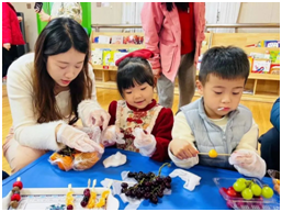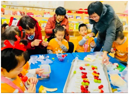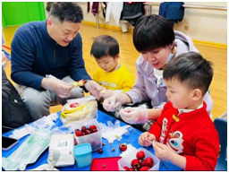 冰糖葫芦竹签串,象征幸福和团圆~小班的宝贝们在家长的陪伴下,实现了“冰糖葫芦”自由。