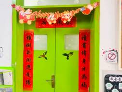 喜气洋洋的春联,高高挂起的红灯笼, 五彩斑斓的气球……幼儿园里洋溢着新年最浓烈的篇章。