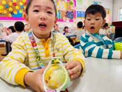 无论吃饭、上课、午睡、还是游戏,孩子们都将蛋宝宝带在身边,时刻保护着。
