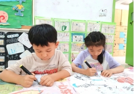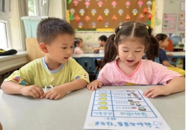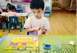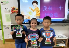 孩子们将任务卡与伙伴们一起分享,快来看看我为爸爸做了哪些事情吧。