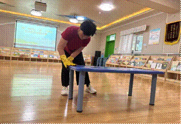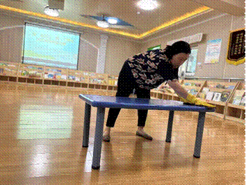 生活老师们结合日常消毒工作实际,在桌面消毒环节中,对擦桌子的顺序和方法都能驾轻就熟,并严格按照操作流程:清水——消毒水——清水的顺序,把桌面、桌边都仔细擦得干干净净。
