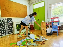 老师们组织有序、合理分工,对户外进行清扫,室内进行全面清洁、消毒,做到不留死角、不留盲区,全力做好班级室内外卫生的清洁工作,为开学做好积极准备。