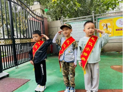 礼仪小标兵站在幼儿园门口迎接幼儿和家长,用普通话礼貌地向大家问好,营造了良好的普通话氛围。