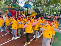听,热情的音乐响起,奏响了运动的号角!随着轻快的音乐节奏,孩子们在跳跃的音符中舒展身体,在动感的舞姿里释放能量,彰显着运动的魅力。
