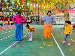 亲子游戏轮番上阵,家长们积极踊跃地参与进来,配合默契,操场上时时爆发出家长和孩子们的笑声。让我们一起来看看吧!