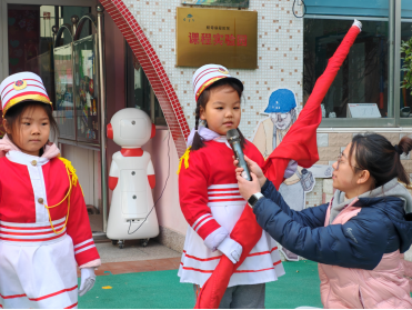 担任本次升旗任务的班级是大一班。小小升旗手和护旗手分别是:俞思羽、于珊、周启航、贾浩洋、吕季昂、施则行六位小朋友。