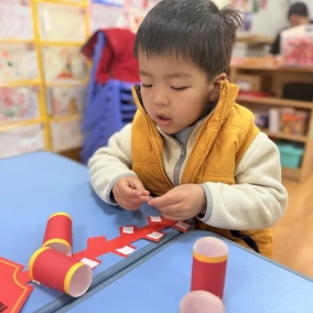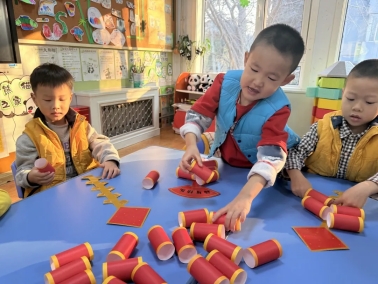 中一班的小朋友们“变”出了一串串火红的鞭炮,噼里啪啦真热闹!