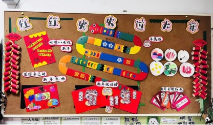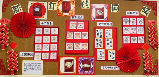 千门万户瞳瞳日,总把新桃换旧“符”。在这充满欢乐与喜庆的日子里,中班的老师和孩子们巧构思,齐动手,一起装扮新年的环境,班级内外处处洋溢着浓浓的节日气氛。