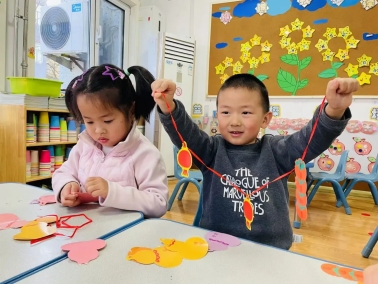 手作之美,吉祥挂饰。中二班的小朋友用灵巧的小手,做出象征着吉祥如意的新年挂饰,满溢着无暇的欢乐与纯真。