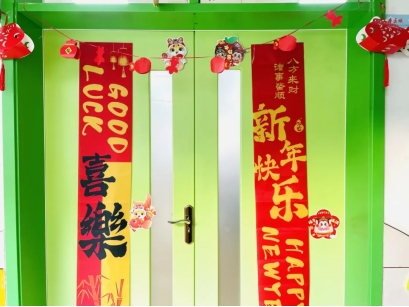 每个班级的布置都是那么别出心裁、富有创意,呈现出新年喜庆的节日气氛。