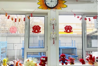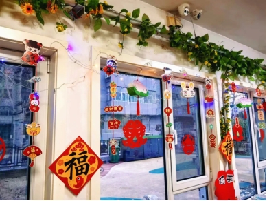 各种各样的新年装饰,巧妙地布置在幼儿园的各个角落,幼儿园焕然一新,让孩子们在新年来临之际,感受到浓浓的节日气氛。