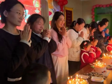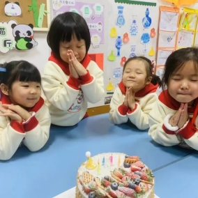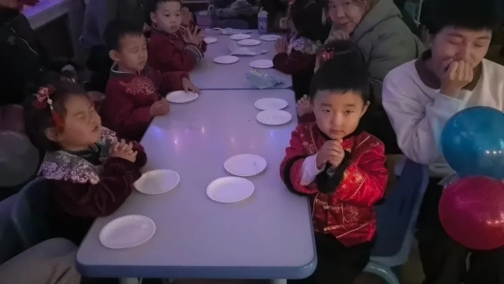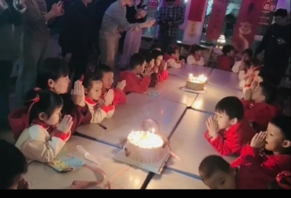 孩子们满心欢喜围坐在一起,等待着一场属于自己的梦幻时刻。他们欢唱着新年儿歌,点燃起蛋糕上的小蜡烛,默默许下自己的新年愿望,迫不及待地品尝起香甜可口的新年蛋糕,共同分享着温馨的幸福时光。