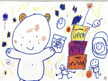 王芊禾:元旦我收到维尼熊送给我的礼物,还和小朋友一起分享了香甜的蛋糕,我感觉特别高兴。