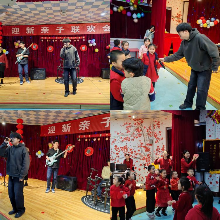 各班联欢晚会在欢快的音乐声中拉开序幕。大班级部的联欢活动由大学生乐队欢快、动感、怀旧的《逆战》和《光辉岁月》两首歌曲开启。孩子们身着节日盛装,用稚嫩且充满活力的舞姿,表达着对新年的期待、喜悦和祝福。紧接着,小合唱、舞蹈、舞龙、朗诵、相声等各类精彩节目轮番登场,充分展现了孩子们的才艺与风采。
