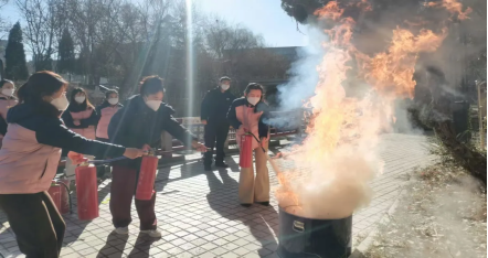随后,全体教师分组上场,个个实操演练。只有亲自操作过,发生火灾时,才不会手忙脚乱。
