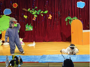 17 日上午 9:00,舜耕校区的“童话剧汇演”活动也在如火如荼地进行。老师们根据孩子的年龄特点,用心选择剧本、精心制作道具;孩子们积极参与角色设定、练习编排剧情。孩子们身着形象鲜明的角色服装,将一个个生动有趣的故事演绎得绘声绘色。