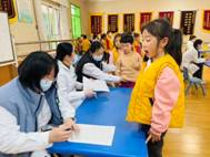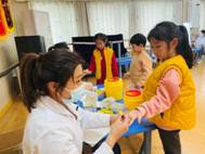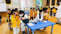 孩子们安静地配合医生将听诊器放在胸口。感受着自己“砰砰”的心跳声,对自己的身体又多了一份好奇。