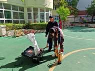 在消防工作人员的指导下,孩子们踊跃参与,有模有样的拿起灭火器,对准“火源”压灭火器压把,过了一把“灭火小英雄”的瘾。老师们也纷纷向前,亲身体验灭火器灭火。