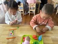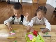 彩色橡皮泥在孩子们手中变幻出多彩造型,花朵、蝴蝶、爱心……,满心期待着给妈妈一个惊喜。