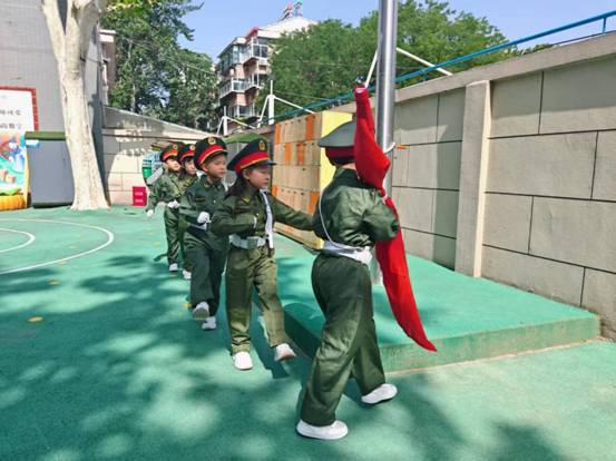 伴随着雄壮的《义勇军进行曲》,五星红旗冉冉升起。全体师幼肃立,向国旗行注目礼,齐声高唱国歌。本次国歌领唱者是大一班于玥小朋友,国歌指挥者是中一班喻老师。
