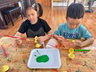 除了制作美味的粽子,孩子们还发挥奇思妙想,用蛋托、彩纸、超轻黏土等材料,制作出可可爱爱的“创意粽子”。