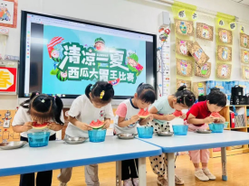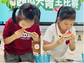 切块西瓜准备就绪!萌娃们大口啃瓜、汁水四溢,“吃瓜冠军”非我莫属!