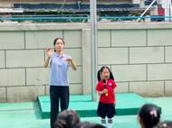 伴随着铿锵有力的国歌,五星红旗冉冉升起。全体师幼庄严肃立,行注目礼,齐声高唱国歌。本次国歌领唱者是中一班蒲与荷小朋友,国歌指挥者是小二班黄老师。