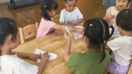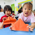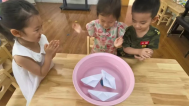 “一折一压小船成,载着清凉送暑行!”教师讲解了大暑节气送大暑船的民俗寓意,并示范将彩纸折成小船造型,让传统文化以折纸的艺术形式延续。