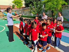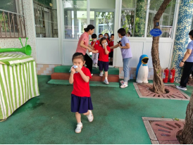 演练前,各班教师根据幼儿的年龄特点与避险要求,借助生动有趣的消防活动,向幼儿传授消防安全知识,让他们了解火灾的危害,明白发生火灾时不可惊慌,培养他们的安全意识。