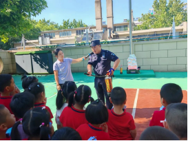 舜耕校区高老师为大家讲解了灭火器的使用方法,还邀请老师和小朋友们一起尝试。学校安全保卫处的消防工作人员走进燕山校区,利用高大上的电子灭火模拟器(可以保护环境没有烟尘),现场演示了灭火器的正确使用方法,并邀请小朋友们纷纷向前,体验灭火器灭火。