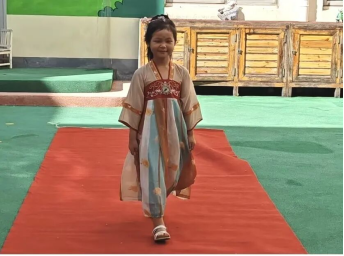 “惜古今”活动区域古韵流淌。孩子们身着各式汉服,衣袂飘飘,自信地走上“T台”,一展华夏衣冠的雍容典雅。一旁的绘画长卷前,亲子共同挥毫,将心中的家国情怀、团圆之景描绘于长卷之上,古今交融,传递着对传统文化的珍惜与热爱。