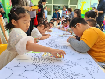 长卷上,五十六个民族的形象渐渐鲜活,孩子们在涂色中认识多元文化,表达对祖国最纯真的祝福。