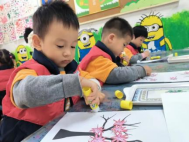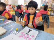 “霜打柿子红如火”,红彤彤的柿子成了孩子们创作的灵感。孩子们给“柿子”点缀上白色“霜花”,再小心翼翼挂在树枝上,寓意满满的作品就此诞生。